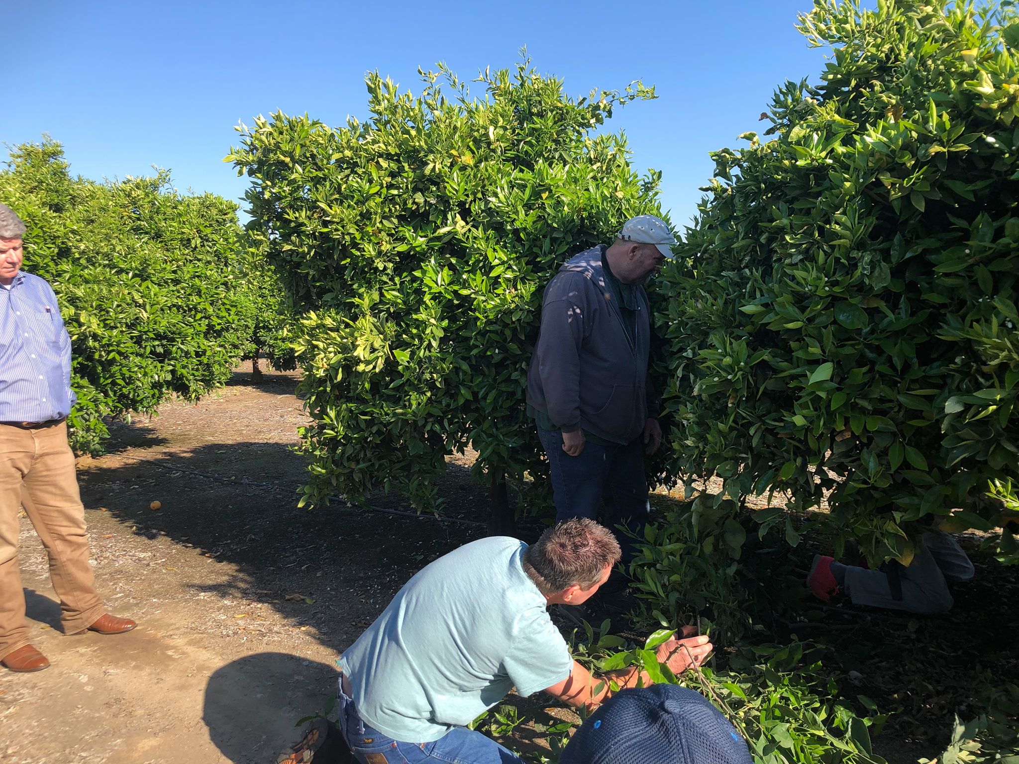 せん定の様子を撮影する現地の農家さん